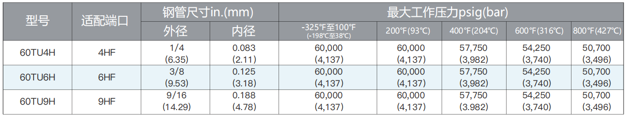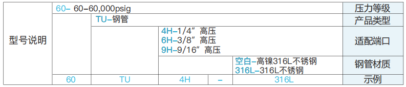 (1)若需要常规316L不锈钢材质钢管,钢管尺寸的型号如60TU4H-316L;